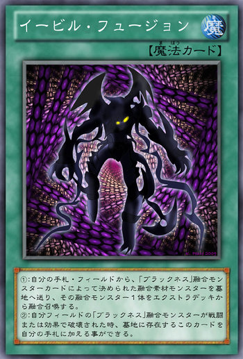 · そのモンスターにカード名が記されている融合素材モンスター1体を自分の墓地から選んで裏側守備表示で特殊召喚する。 召喚・特殊召喚時、 手札1枚をコストに デッキから「融合」または「フュージョン」通常魔法1枚をサーチする モンスター